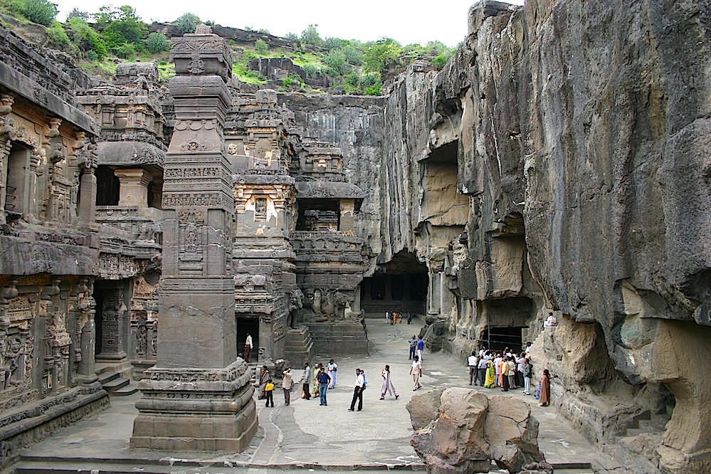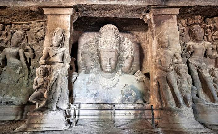 Elephanta Caves contain rock cut stone sculptures that show syncretism of Hindu and Buddhist ideas and iconography.The caves are hewn from solid basalt rock. Except for a few exceptions, much of the artwork is defaced and damaged. The main temple’s orientation as well as the relative location of other temples are placed in a mandala pattern.