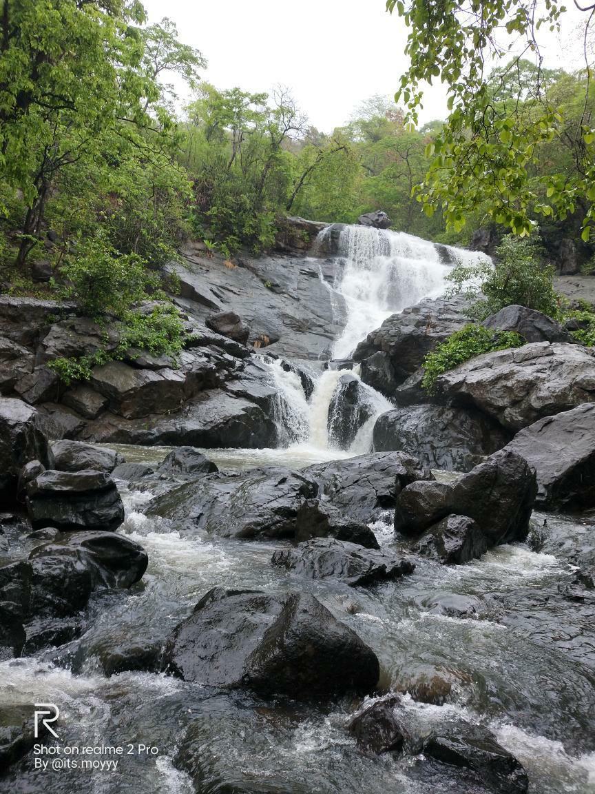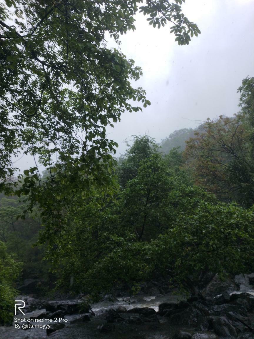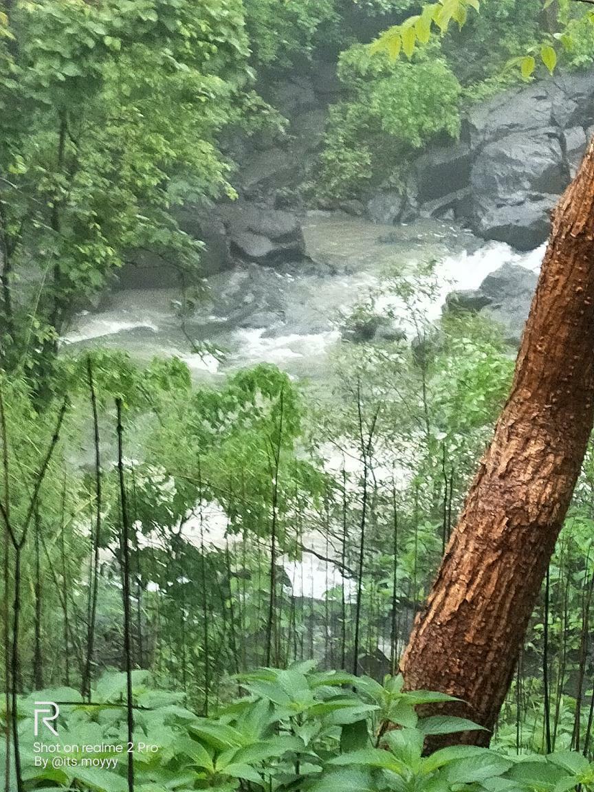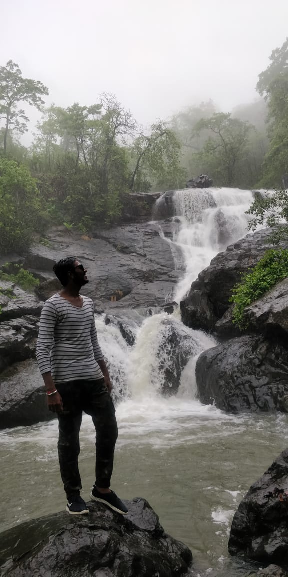 Β Β Β Β Β Β  But all that moment was not for too long. Suddenly the weather started getting worse, sky filled with dark, grey clouds, it started raining heavily just like in a bad storm, we could feel the increased force in the waterfall, the sound of the waterfall was getting louder and just at that moment we realised what the previous group warned us about. But we were too late, suddenly there was a flash flood, we were almost enjoying there for more than half an hour. We immediately packed our stuff and started leaving from there. But as I said, it was too late. As we left, the first thing we found was a huge stream just a little away from the waterfall coming from the uphill which was just a small one when we came but now the force was very high and the trail was quite narrow and curved. On one side was the hill and other side was the cliff from where we could clearly see the water from the stream merging down with the water from the waterfall. We decided to move ahead as we had no other option so we stepped carefully into the stream. After a couple of steps we could feel the slippery surface and rocky bottom making difficult for us to make grip. The water was deeper till the knees and the muddy water made it impossible for us to see the bottom. I was on the right most side near the edge of the cliff. All that was going in my mind was that if I tripped, I will be going right down along with the stream. I carefully moved ahead and all of a sudden I found me stepping over a loose stone, that stone slipped and I disbalanced. I was about to fall from the cliff. But somehow i managed to get some grip and slowly cleared the stream. This was very scary but without wasting much time we all quickly left that spot.