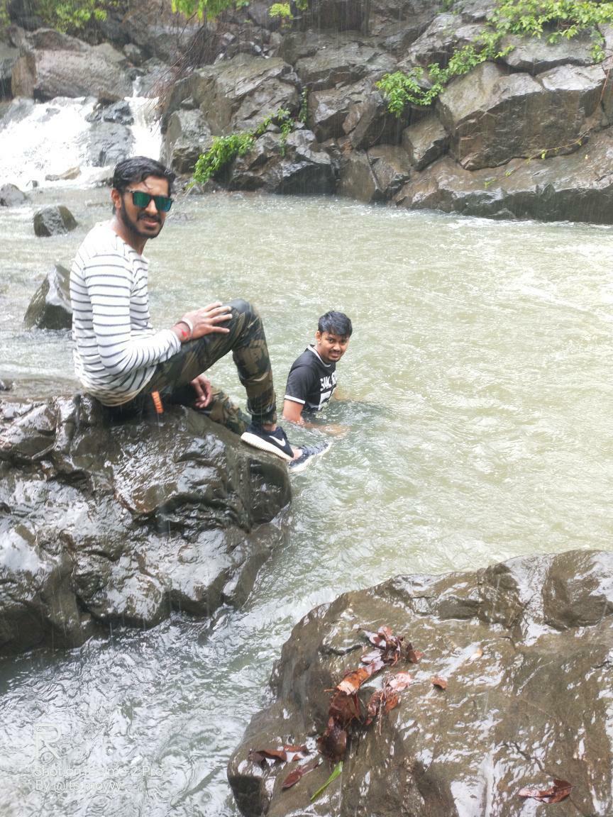 Β Β Β Β Β Β  We expected a good amount of crowd up there but things were different when we reached there. Just a small group of about 5 or 6 people who were about to leave the place the moment we reached there. While leaving they just warned us to leave the site as soon as possible and not be there for more than 5 to 10 minutes. They said the weather is changing quickly and the flow of water is increasing rapidly. But we were filled with excitement so much that we unheard what they said. We just threw our bags over the rocks and dived into the water. Did some dives over the cliff, clicked some photographs and rested on one side of the waterfall where the waters flow felt like a good massage over our tired body. It took us 3 and a half hours to reach up but we just forgot everything and were living in that moment. We opened up our snacks enjoying every bite of it just beside a huge waterfall and no one else around, just us.