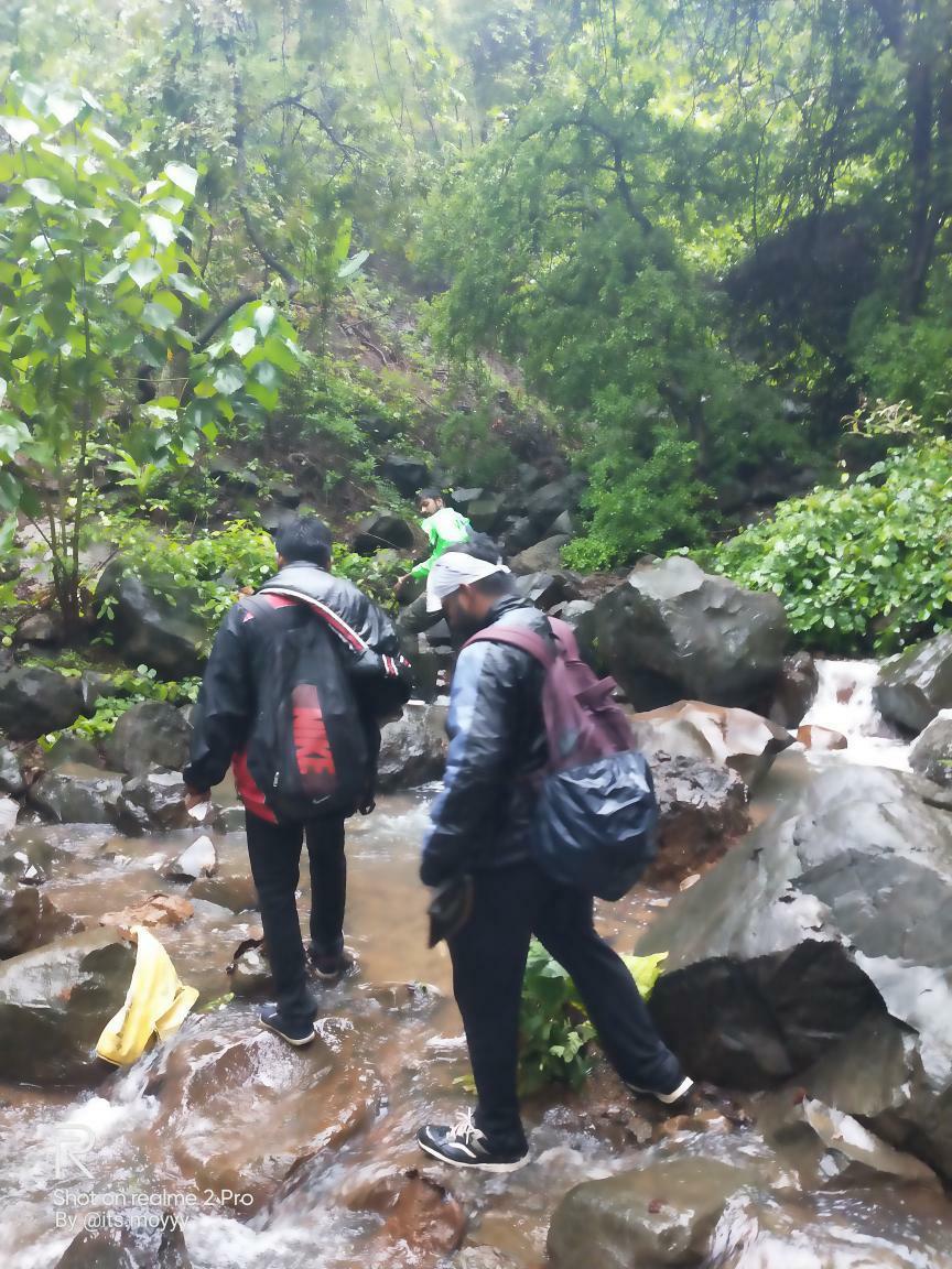 Β Β Β Β Β Β  Now that we remember the correct route back we increased our speed. The water flowing down besides us was much louder than we heard while going but at that moment all we had inside us was to get back home safely. While returning we came across all those streams that we crossed while going and they all had much higher pressure if water flowing but somehow we managed to clear them one after the other. We met a few groups on our way back who were still going towards the waterfall, we tried to explain them that the situation was very worse up there but they were unable to understand the intensity of the situation, anyways it was their decision to take the risk and we moved ahead.