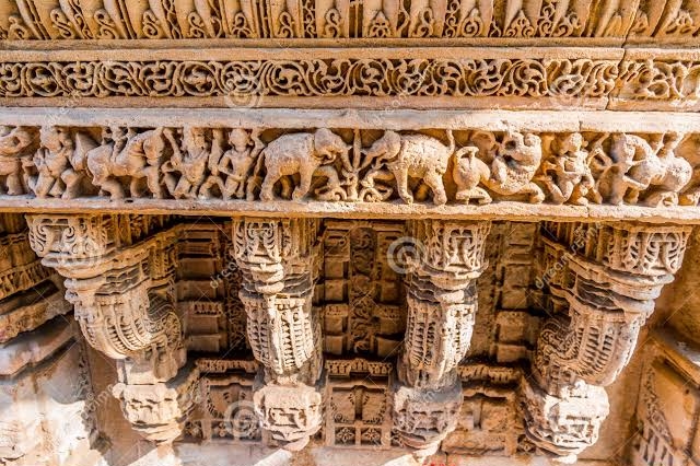 The cultural and architectural depiction in the deep wells at various levels is a tribute to the history of step wells, built initially by Hindus and subsequently ornamented and blended with Islamic architecture during the Muslim rule.